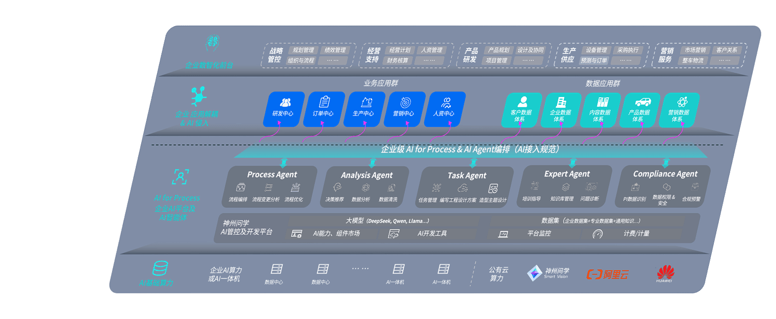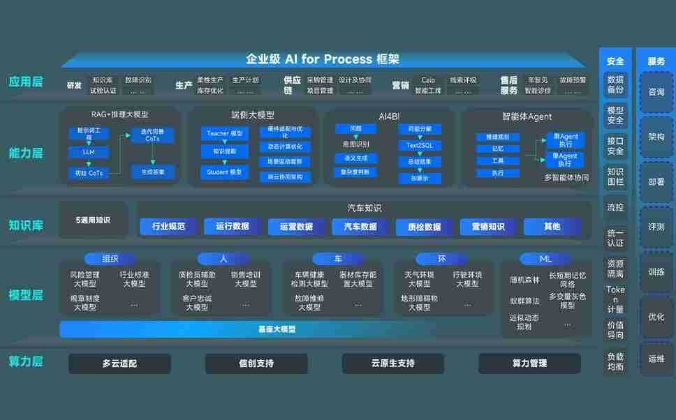 端到端的一站式AI工作空间深度融合了从企业战略规划到日常经营的全流程业务板块,,,定向解决车企内部领域多、、、部门多、、链条长、、、、场景碎片化等难题,,,支持车企快速构建以AI为核心的生产力写作体系,,,,实现任务执行与AI能力的无缝集成与交互